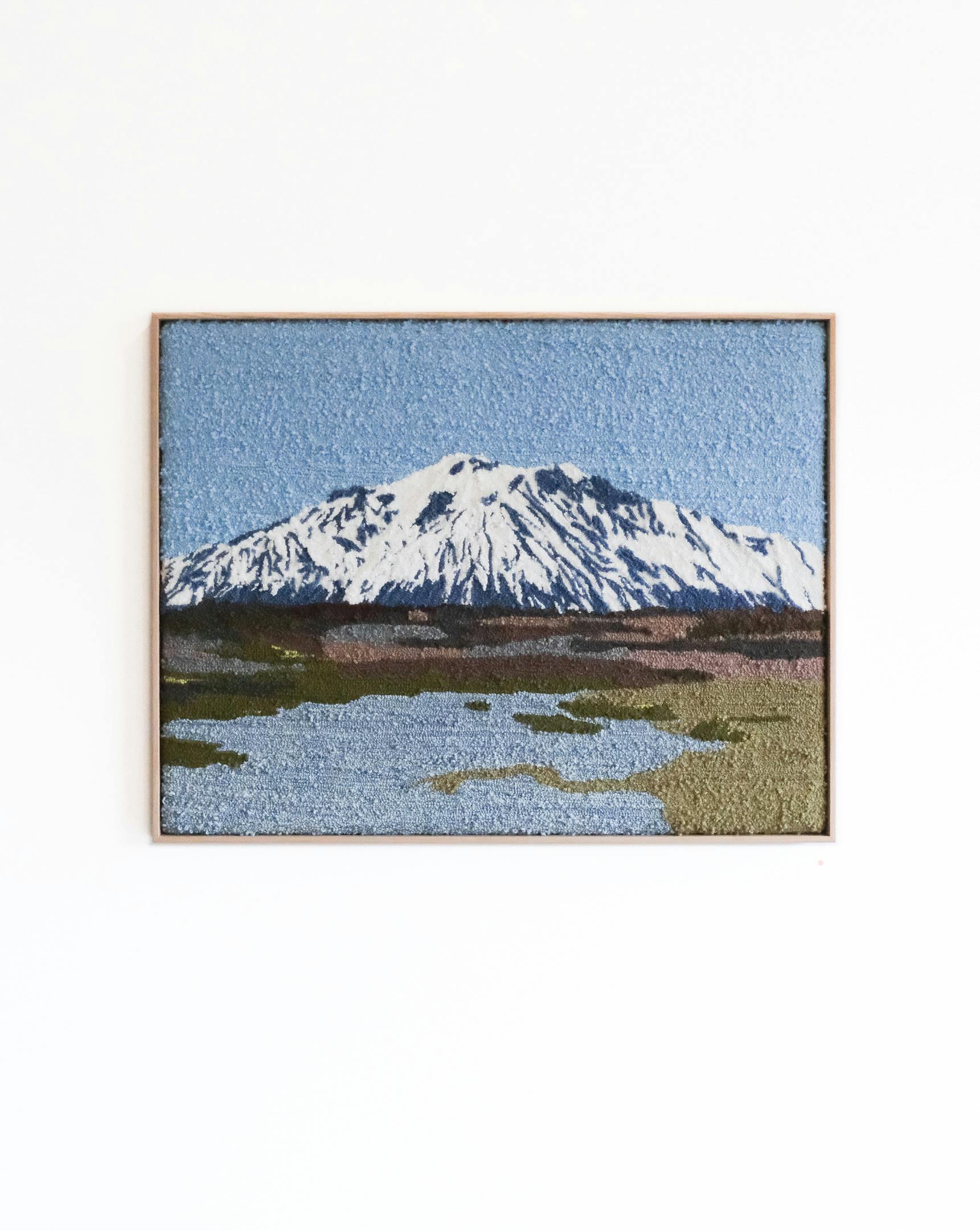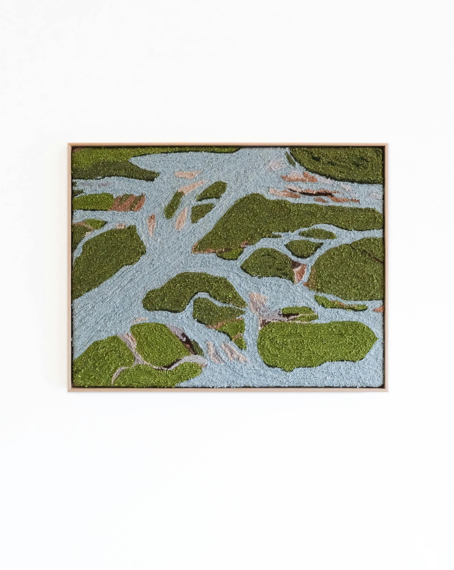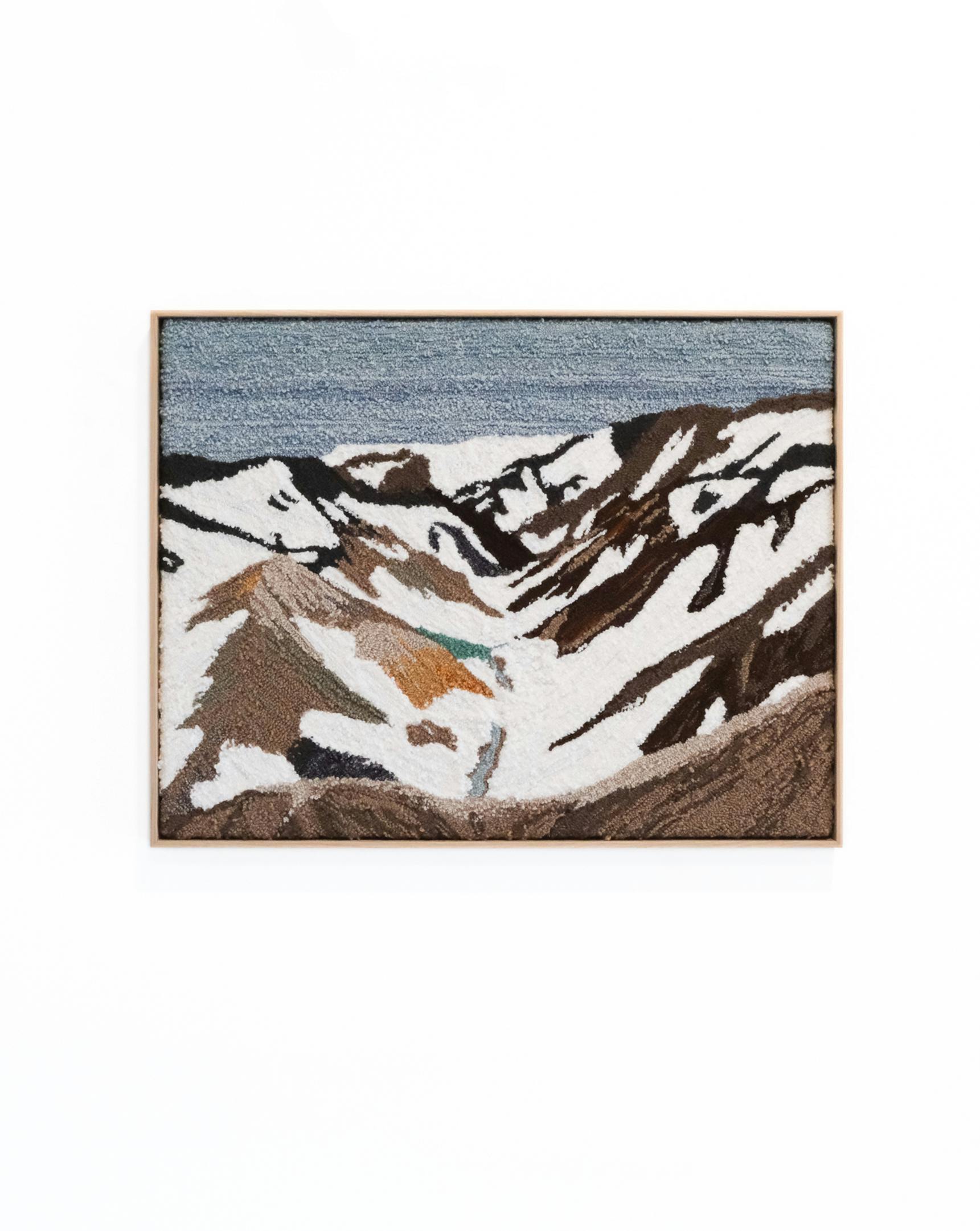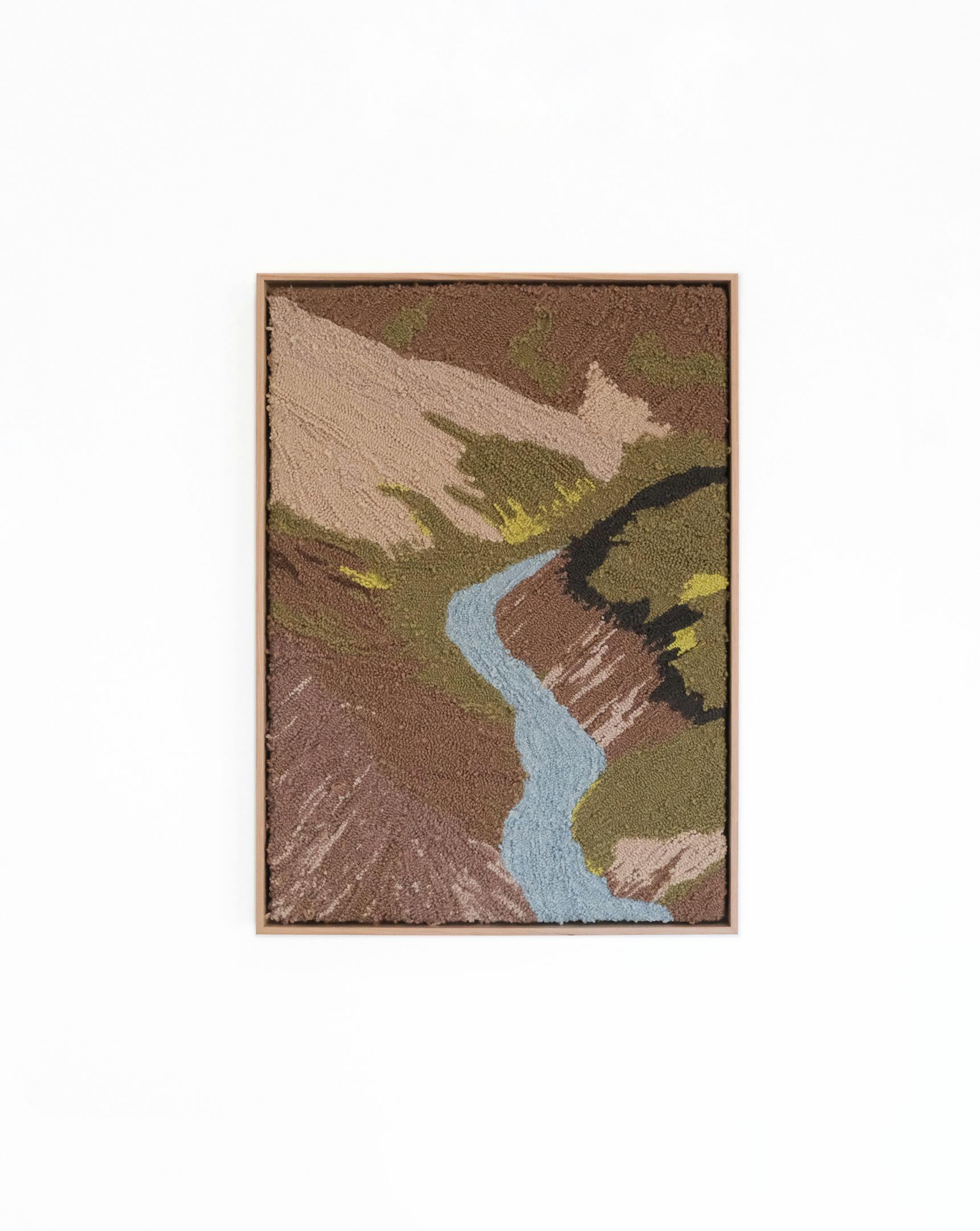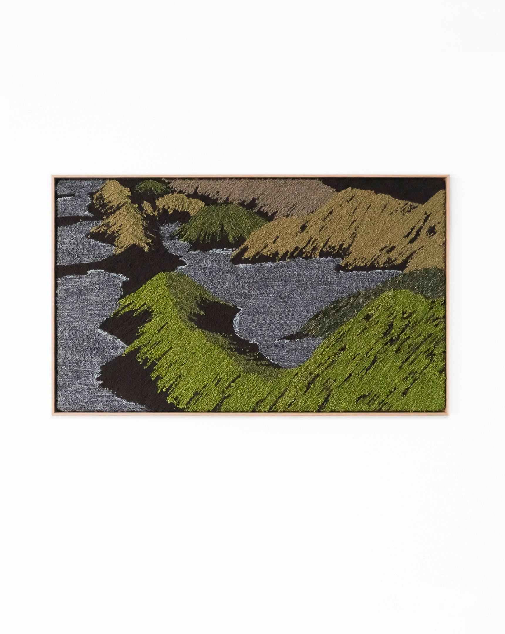 Áferðin og þræðirnir skapa þannig rými sem virðist bæði kunnuglegt og nýtt. Landslagið í verkum Þórðar Hans öðlast líkamlega nærveru gegnum þráðinn, en minnir samt á sama tíma á sköpunarferlið sjálft, þar sem myndin er mótuð og endursköpuð í annarri framsetningu.